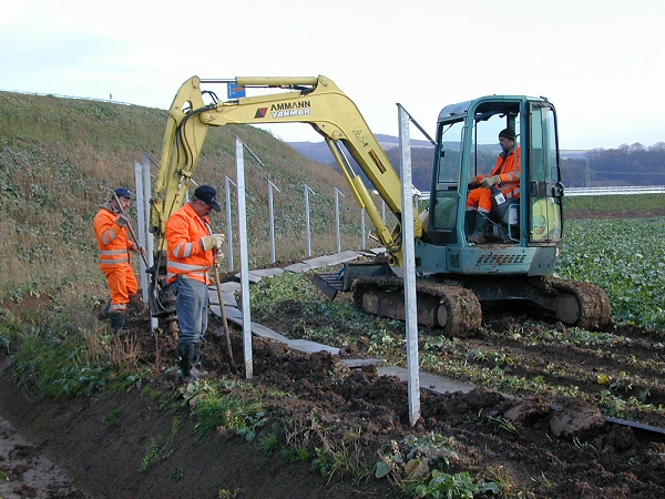 21. Dezember 2005: Der von uns geplante und "bauüberwachte" Wildkatzen-Schutzzaun an der BAB A 38 ("Südharzautobahn") im niedersächsischen Abschnitt nimmt langsam Gestalt an.