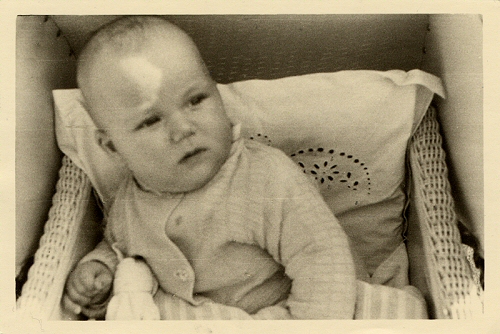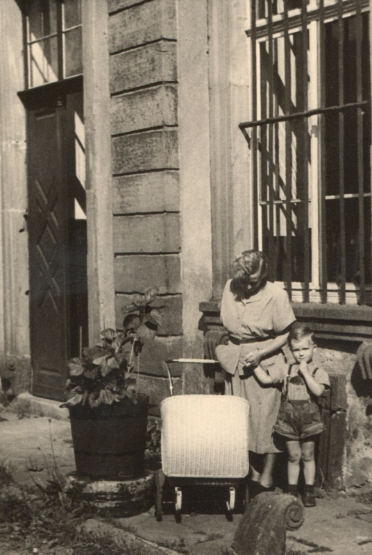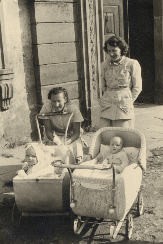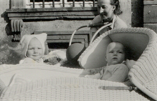 irgendwann ist immer das erste Mal: August 1949 (links "Tante Elisabeth" Schmitz-Malberg mit Christoph, rechts Tante Ena Wirz mit meiner moppeligen Wenigkeit)