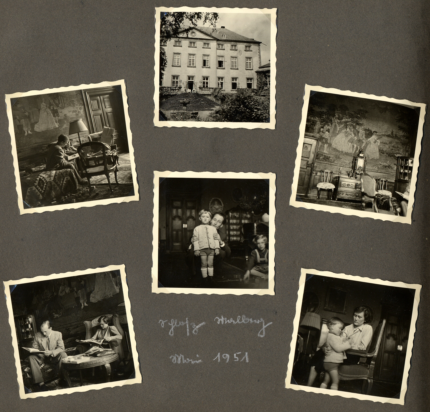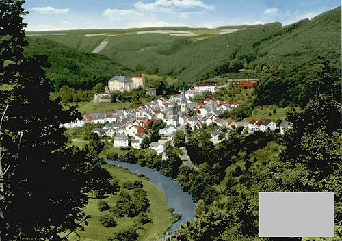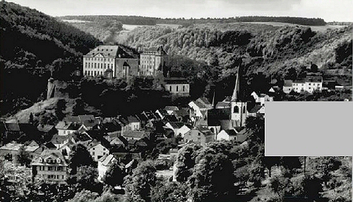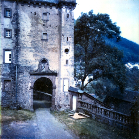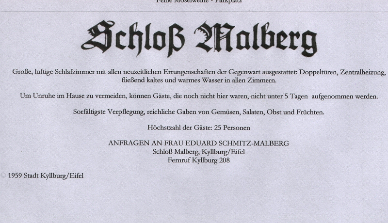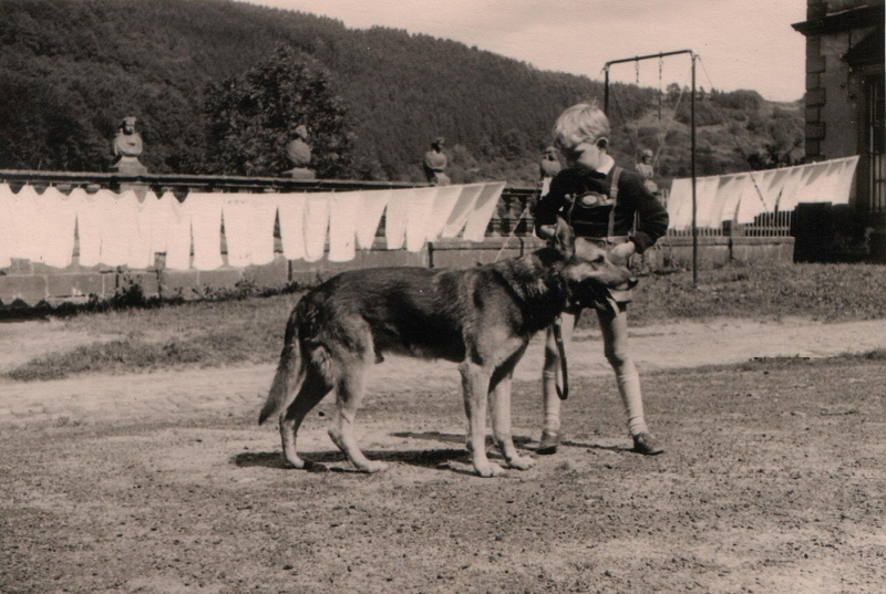 Schade, dass damals offenbar niemand aus meiner Familie "systematisch" fotografiert hat, woran ich noch heute gute Erinnerungen habe, z.B. wie wir als Kinder die Breuer'schen Kühe mit über den Hof getrieben haben (inklusive den für mich Stadtkind ersten Erfahrungen, dass diese Tiere nicht nur Milch, sondern auch Fladen produzieren), an den Holzhack-Platz neben den Ställen, wo wir das erste Mal mit Axt und Beil hantieren durften [durften wir ?], an das geheimnisvolle und sehr baufällige Innere des "Alten Hauses", an den "Eisernen Garten" in voller Blüte (mitten drin "Tante Elisabeth" in Aktion), an "Tante Mieze", ihr "Geseeegnete Maaahlzeit" zelebrierend, an das imponierende Riesenbild mit der Jagdszene (Bären und Hunde), an die Badestelle an der Kyll, an Luftmatratzen-Fahrten kyllabwärts, etc., etc. So muss ich wohl oder übel mit dem auskommen, was ich im Kopf bewahrt und in Alben und Kästen gefunden habe ...