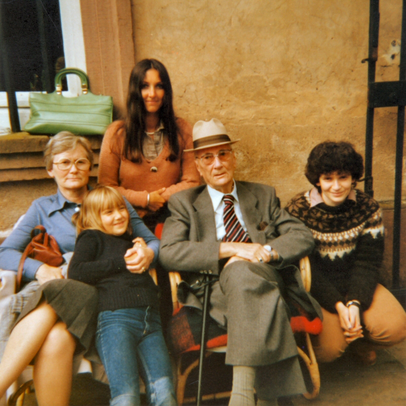 September 1978 --- Vier Generationen auf Schloss Malberg von links nach rechts: Eva Wirz (geb. Steinert), Nicole Wirz, Elfi Wirz, Herbert Steinert, Andrea Wirz