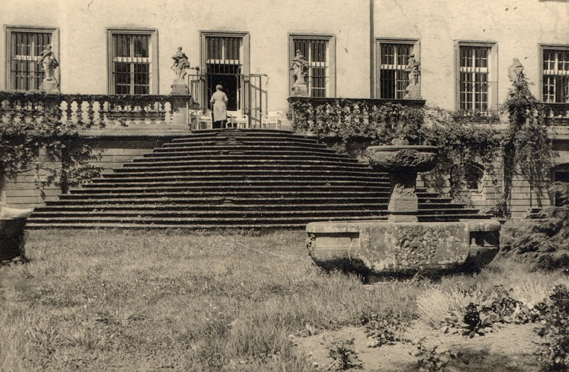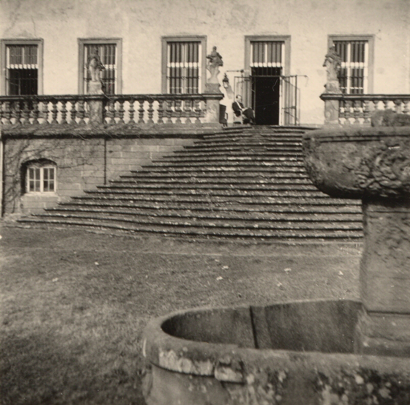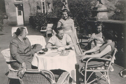 auf der Terrasse: Maria "Tante Mieze" Schmitz-Malberg, "Frl. Günther", Inge Maassen (spätere Steinert), Elisabeth Schmitz-Malberg und Ena Wirz (Foto von Inge und Volkmar Steinert)