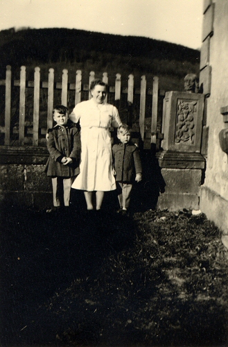 Mai 1951 in der Mitte mit Onkel Jürgen (Steinert) und Cousine Claudia (Wirz)