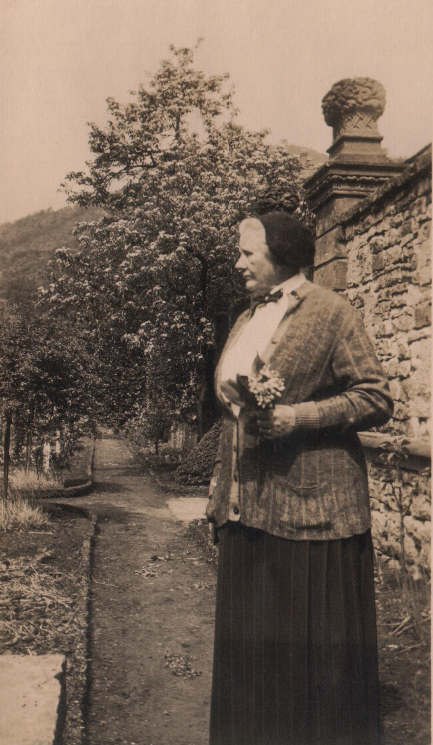 Julie Maassen (Fördererin von Schloss Malberg Anfang des vorigen Jahrhunderts) im Eisernen Garten (Foto von Inge und Volkmar Steinert)