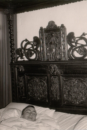 Volkmar Steinert in "Tante Mieze's" Himmelbett (Foto von Inge und Volkmar Steinert)