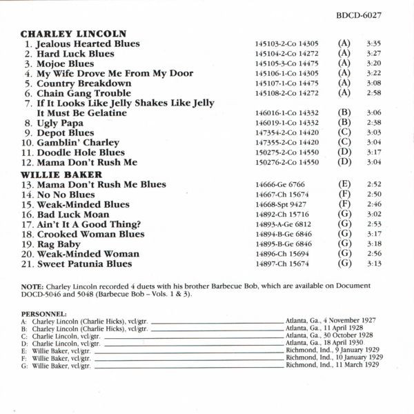 notes by Roger Misiewicz RST Blues Documents BDCD-6027 (Austria 1992)