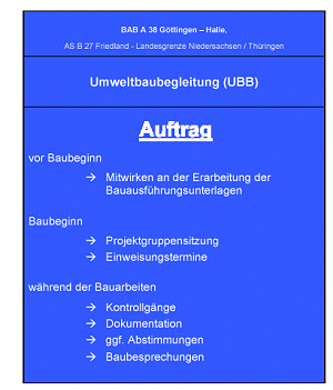 | 03. Juli 2003: Astrid Sievert berichtet anlässlich der diesjährigen Dienstbesprechung der Landespfleger in der niedersächsischen Strassenbauverwaltung über ihre Erfahrungen mit der 'Ökologischen' (=Umwelt-)Baubegleitung beim Bau der "Südharzautobahn"